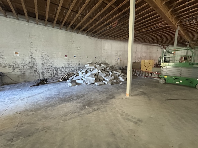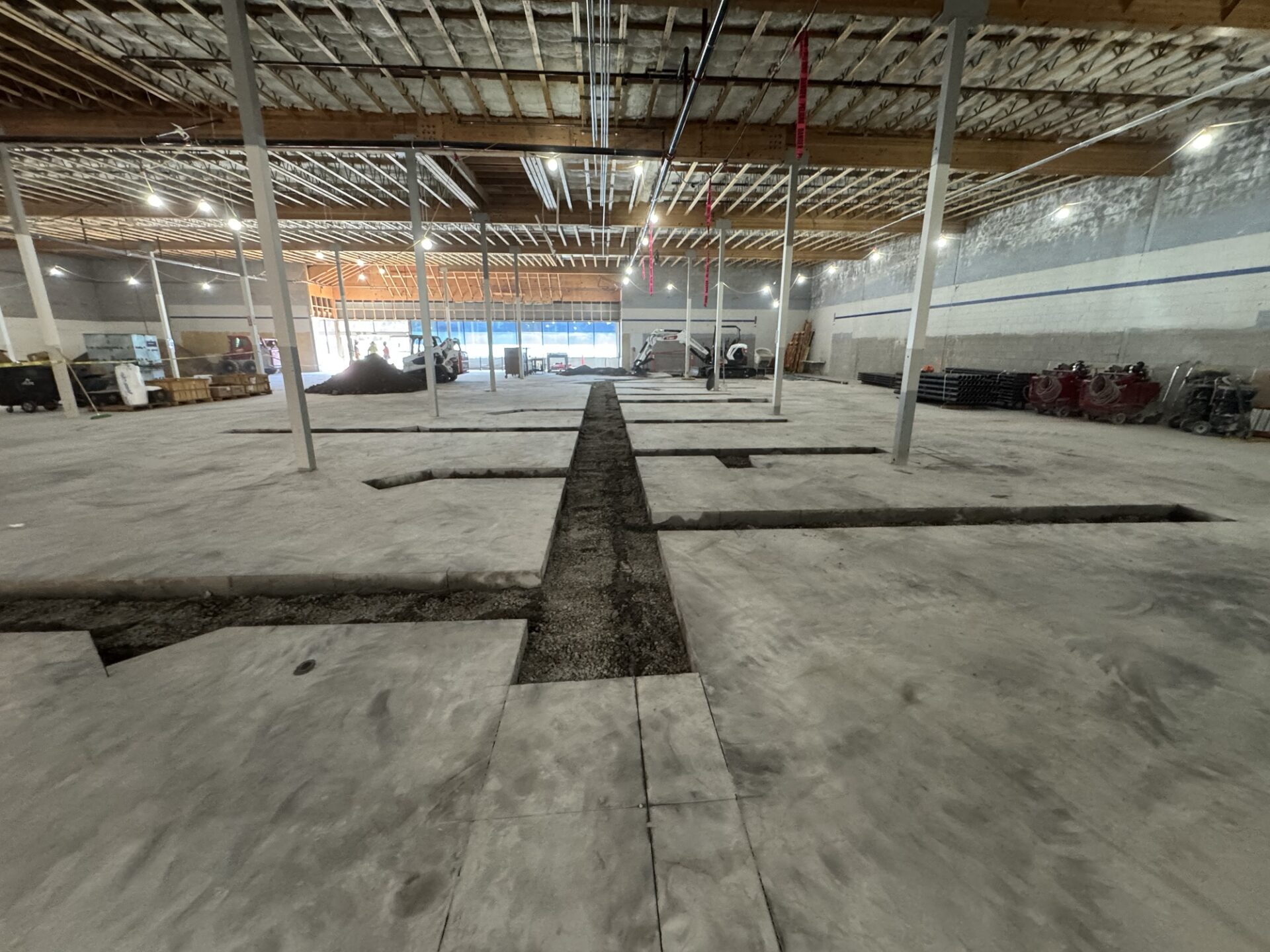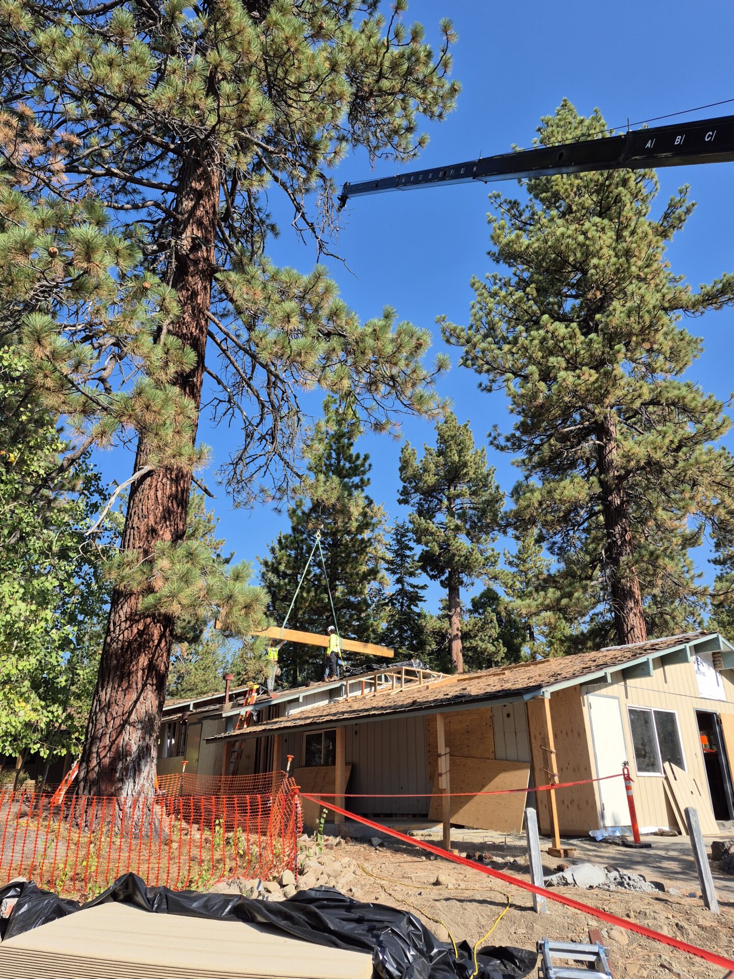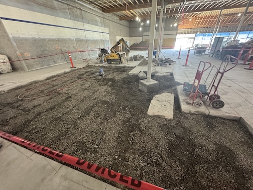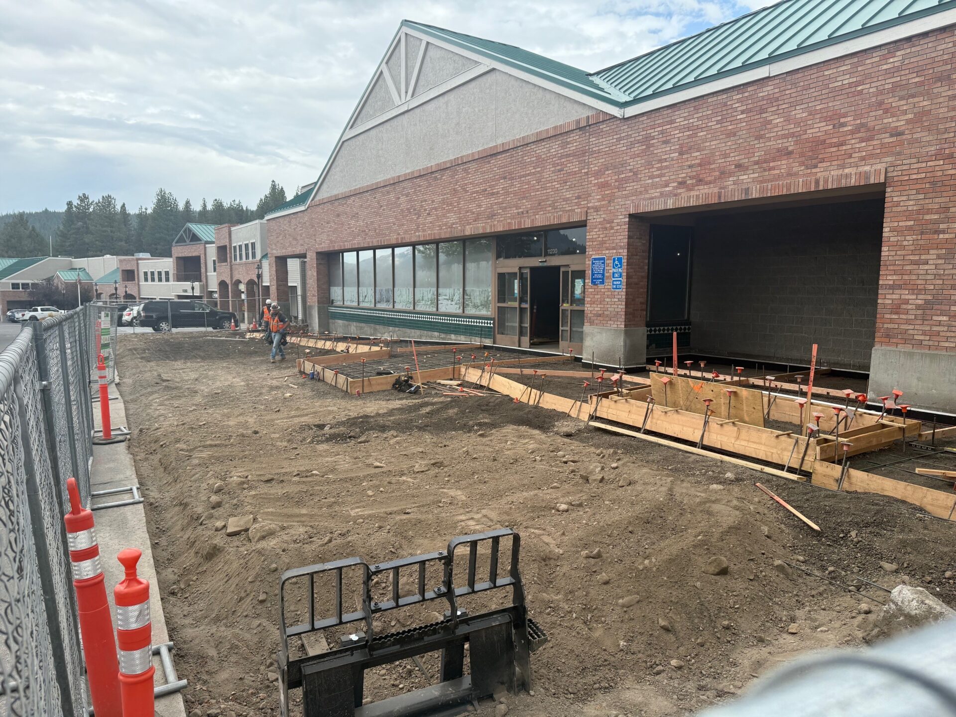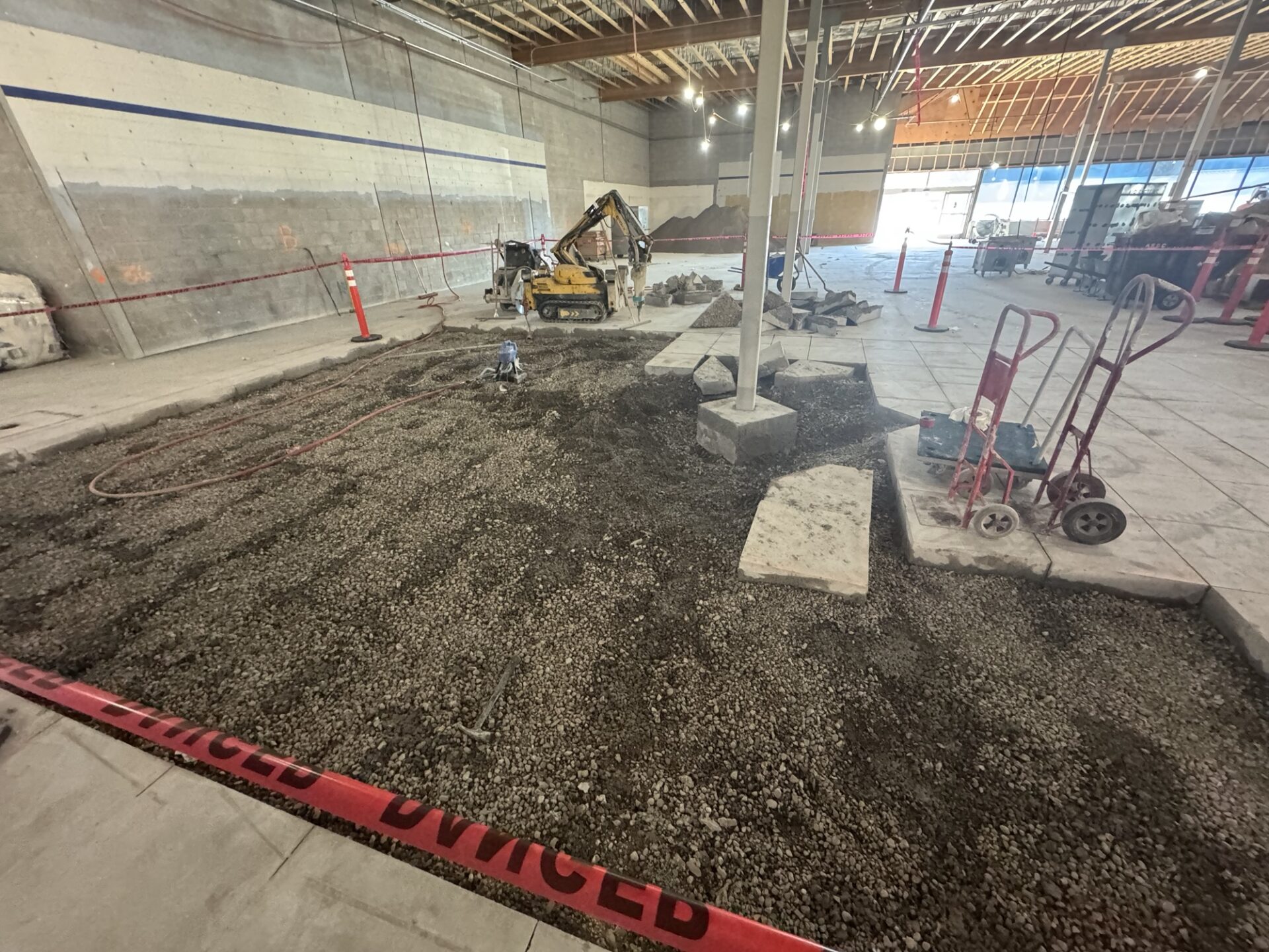 Following the Town of Truckee’s issuance of the building permit on July 28, 2025, construction at the Sierra Center began immediately. Contractors quickly got to work demolishing the existing walls, floors, and ceilings to make way for the next phase of development. The team has since moved on to installing under-slab utilities, preparing new front sidewalks and parking areas, and coordinating installation of the brand-new roof.